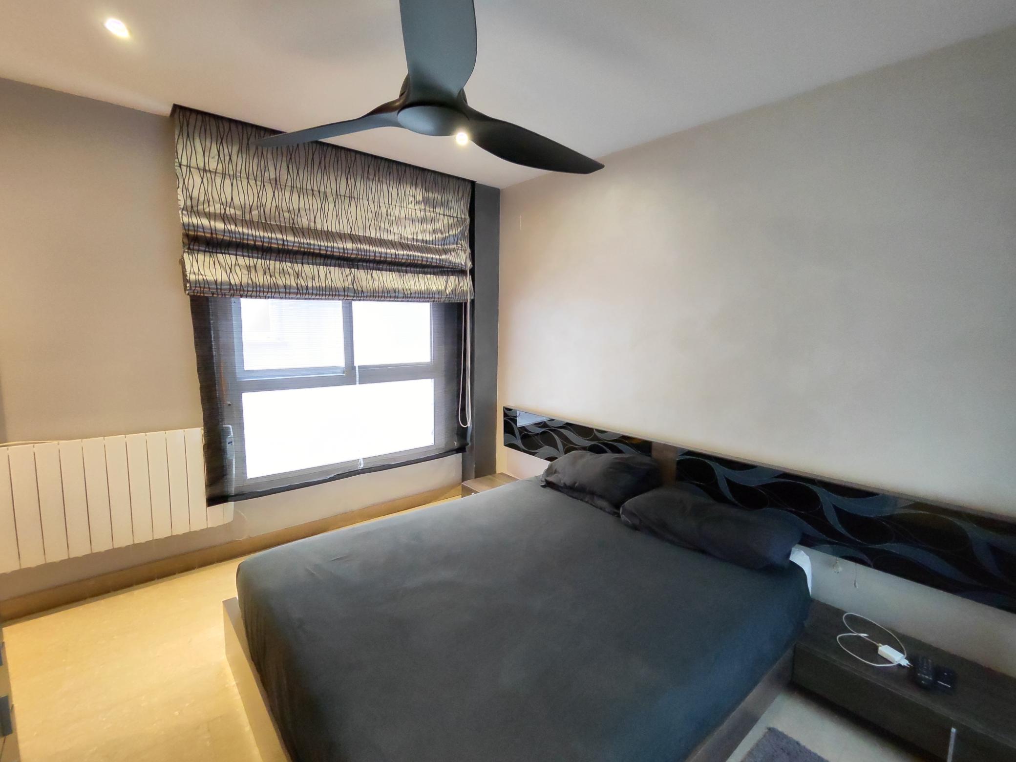 Radiadores de calor azul en toda la vivienda y ventiladores, suelos de gres porcelánico y carpintería de aluminio con cristales climalit.
